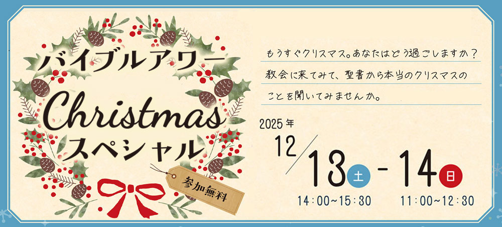 ○ バイブルアワークリスマス☆12月13日(土)PM2:00〜・14日(日)AM11:00〜開催!ほんとうのクリスマスがここに。チケット・お問い合わせ