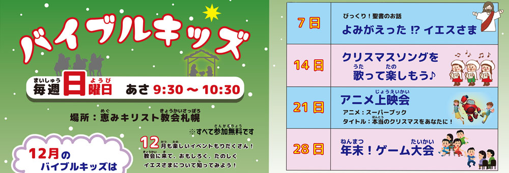 ○12月のバイブルキッズも楽しさいっぱい☆12月のフライヤーはこちら!