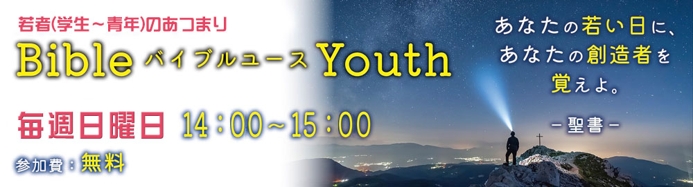 ○ 若者ための集会・バイブルユースの開催日時が【毎週日曜 午後2時から】に変わりました!詳細決まり次第掲載☆お問い合わせはこちら