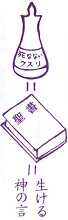 そしていよいよ店の奥までやって来ると問題の「死なないクスリ」の貼り紙が目にとまりました。その下に置いてあったものそれは…開かれた一冊の大きな聖書だったのです。