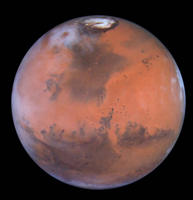 はんたいに、火星かせいでは、温度おんどはマイナス60℃どです。こんどは、水はこおりになってしまいます。